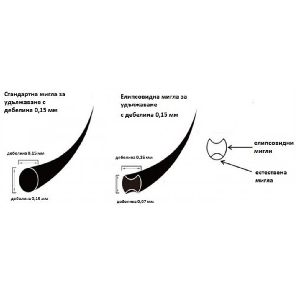 - Мигли елипсовидна структура поставяне косъм по косъм.